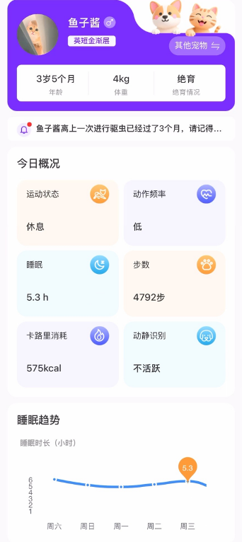 “通通宠AI”健康监测、医疗咨询、生活服务模块