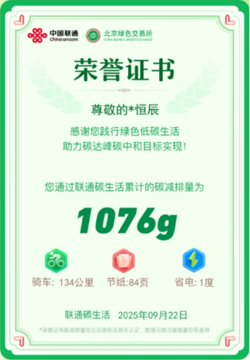 在个人生活降碳方面,中国联通更是率先推出通信行业碳普惠应用“联通碳生活”,其碳减排量计算模型通过国家级认证,累计获得国内外相关荣誉16项,填补了行业个人碳账户空白,赋能亿级用户绿色生活方式转型。