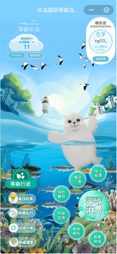 10:00,游客李女士在南长山岛的林海峰景区入口,打开手机里的“长岛国际零碳岛普惠平台”购买了一张门票,刷入闸机,便开始步行游览。游览结束后,她的步行里程自动转为了碳积分。这些积分可以直接在消费时抵扣现金。在碳积分AI算法的自动核算下,低碳行为变成了实实在在的激励。