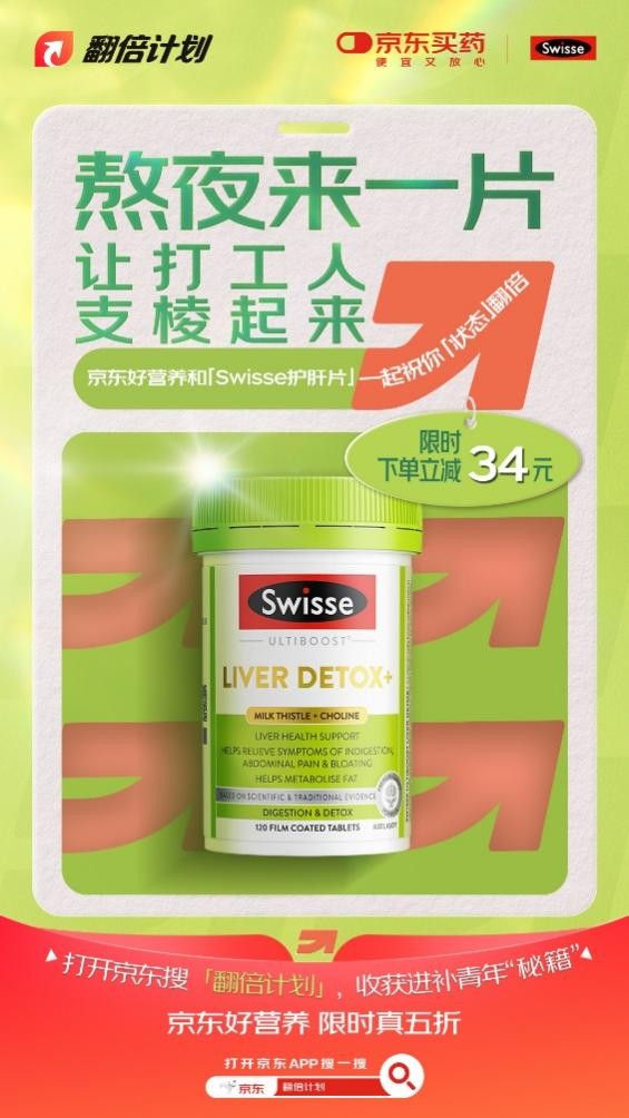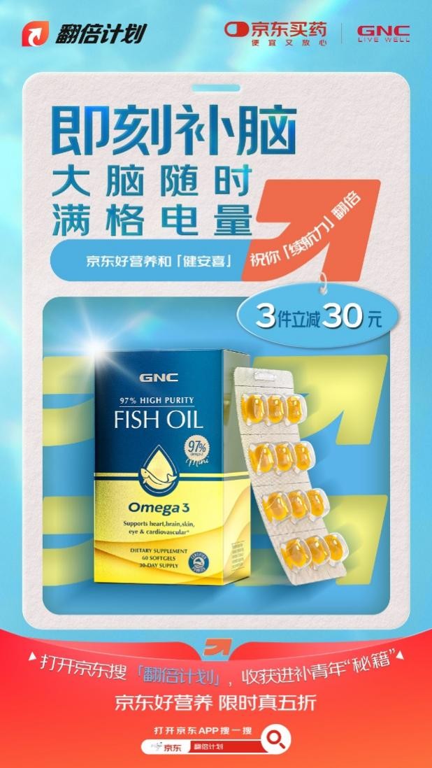 同时,“翻倍计划”精准补位“进补型”健康需求缺口——当熬夜脱发、胃病频发等亚健康状态逐渐成为普遍现象,职场青年的健康需求已从“治疗”转向“预防与调理”。 此外,不同关于中老年的“滋补”,年轻人的“进补”更偏好精准、高效的便捷体验。基于此,京东好营养联动益节、Swisse、GNC等多个品牌,产品力覆盖补脑、护肝、补气养血等高频需求,全面而细分地匹配职场青年进补需求。